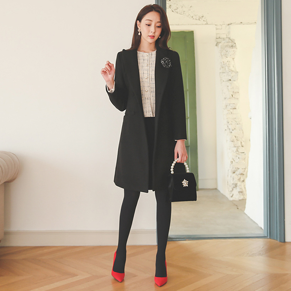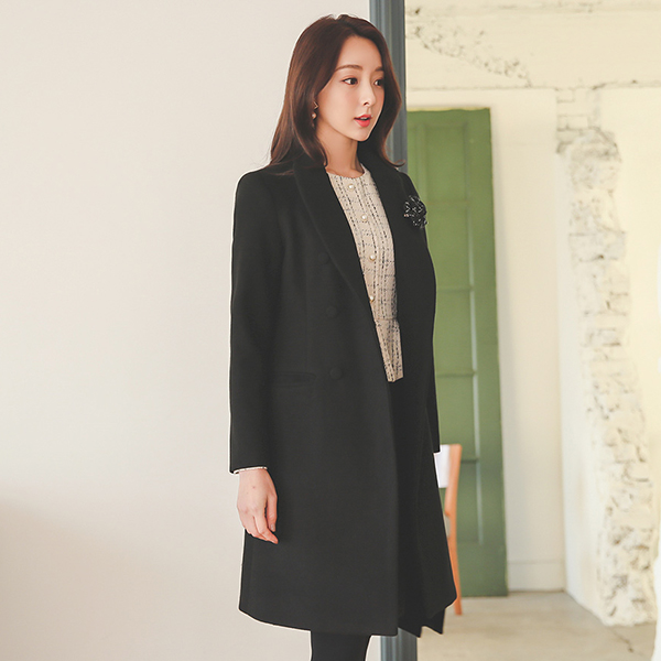 Loel ベーシック ダブルボタン 毛織 コート