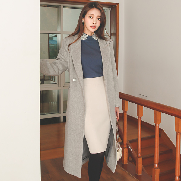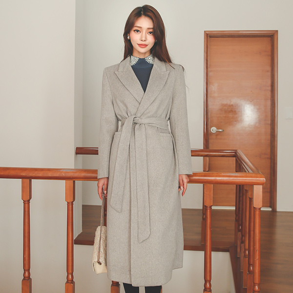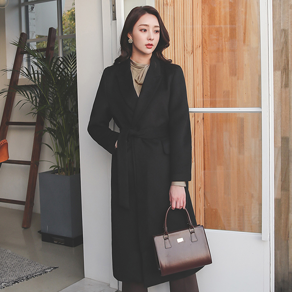シンプル ベーシック ワンボタン ベルト ロング ウールのコート