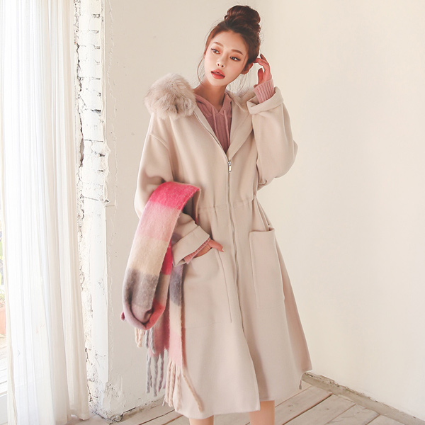 リアルフォックス フード ストリング ハンドメード ウールのコート