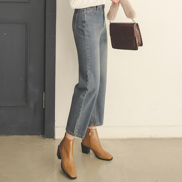 ボーイフィット ナチュラル ウォッシング デニムパンツ(起毛裏地)