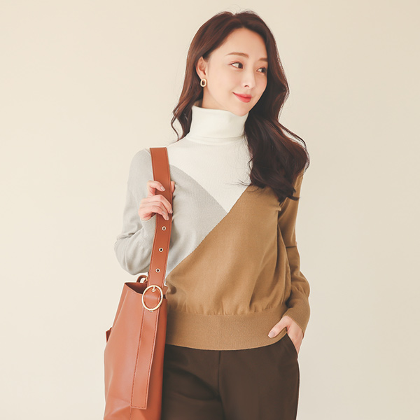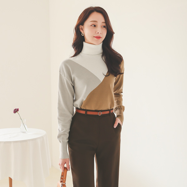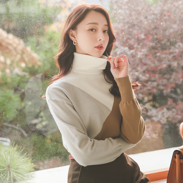 セクション 配色 タートルネック ニット