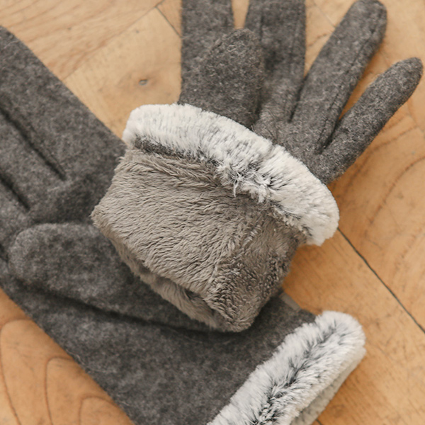 ステッチ ファー 毛織 スマート タッチ 手袋