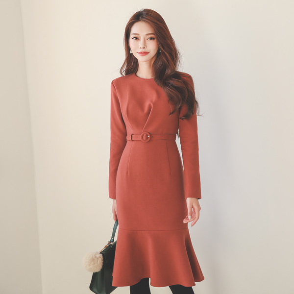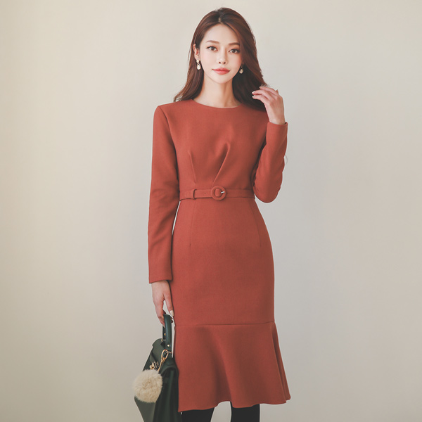 ピンチシャーリング ベルティード マーメイド 起毛 ワンピース