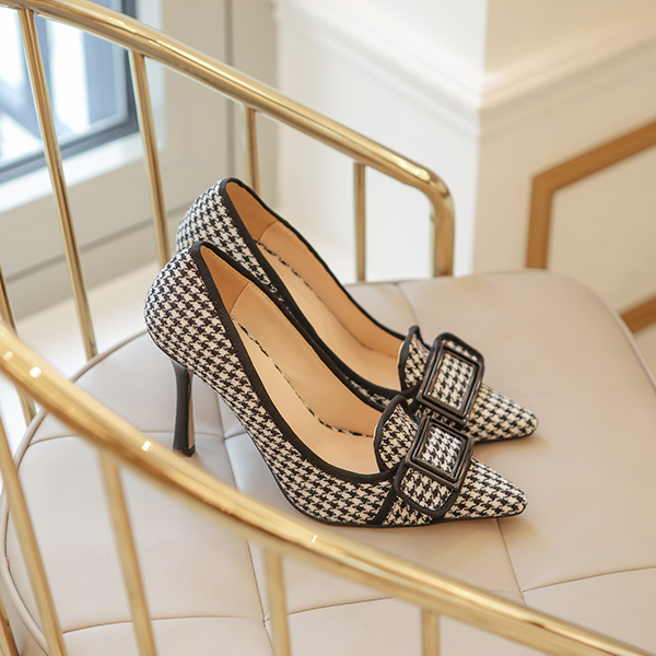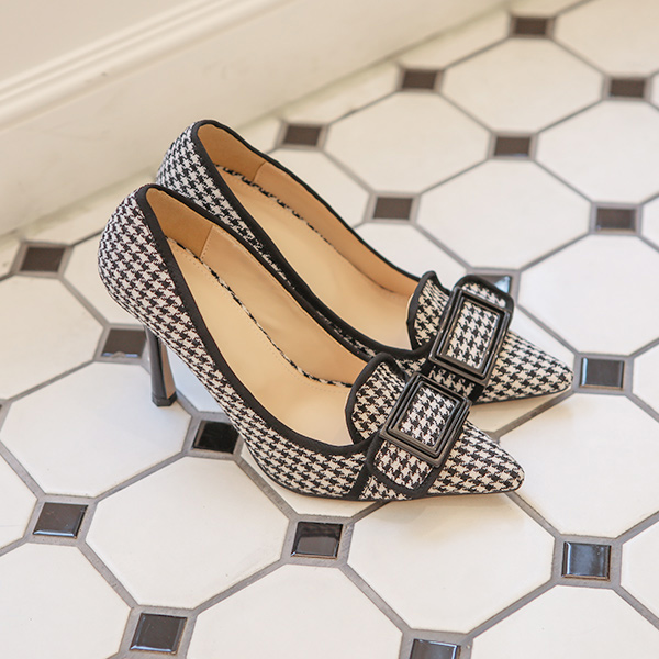 ハウンドトゥース テーピングライン バックル スティレットヒール