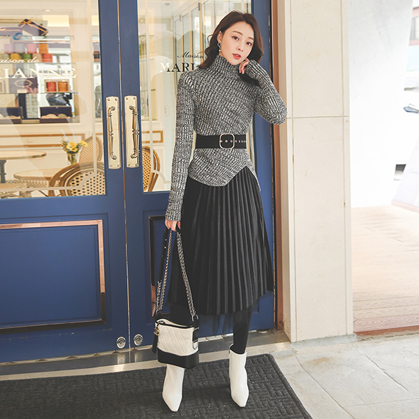 アンバランス ボカシ ベルベット ニット&スカート SET