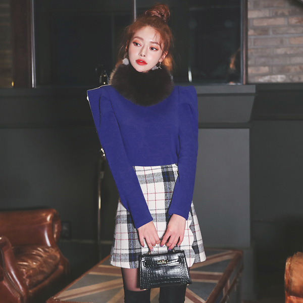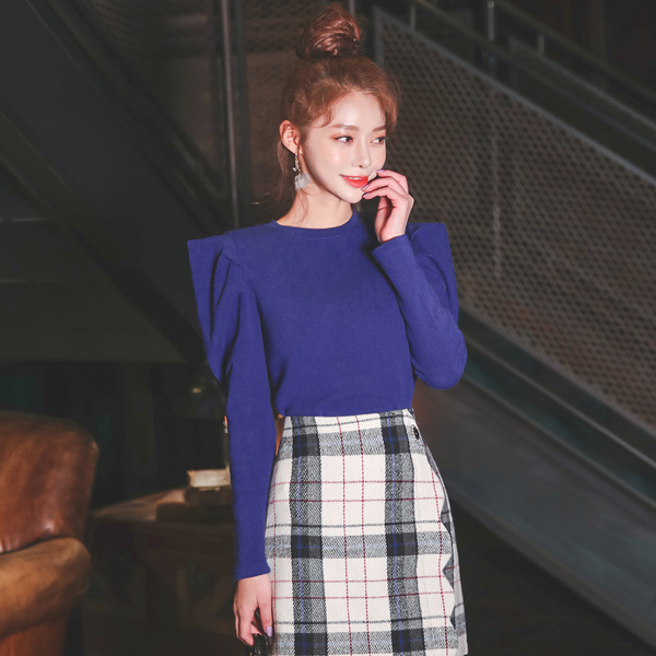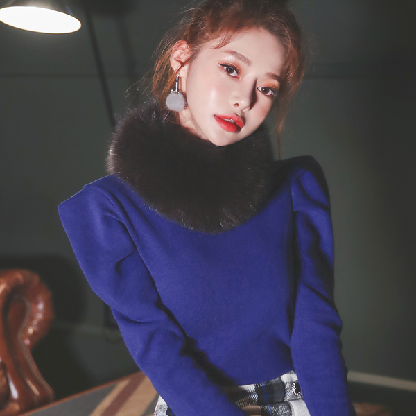 ビビッド シャーリング パフショルダー テンセル ラウンド ティー