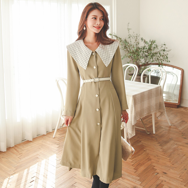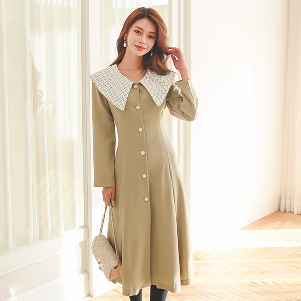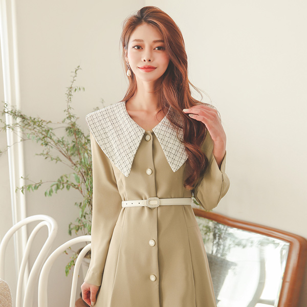 ツイード セーラー カラー 샤인버튼 フレア ワンピース