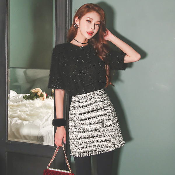 フリンジ ツイード ミニ スカート