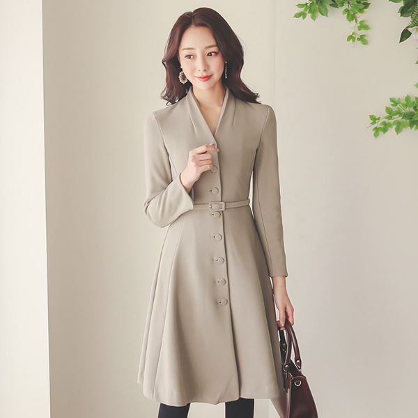 ブイネック スリム ベルティード 弾力 フレア ワンピース