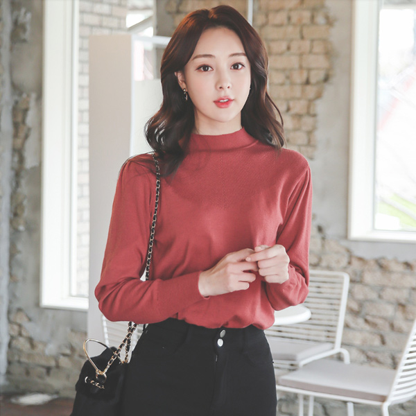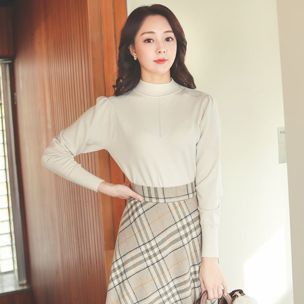 すかし パンチング ショルダーシャーリング ハーフネック ニット