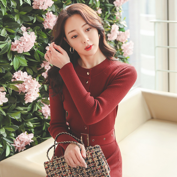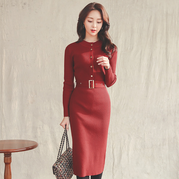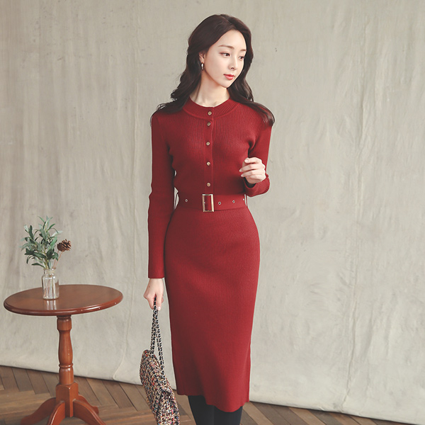 ゴールドベルト ボタンライン コール天 ニット ワンピース