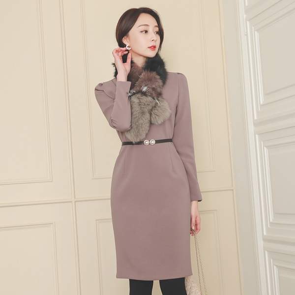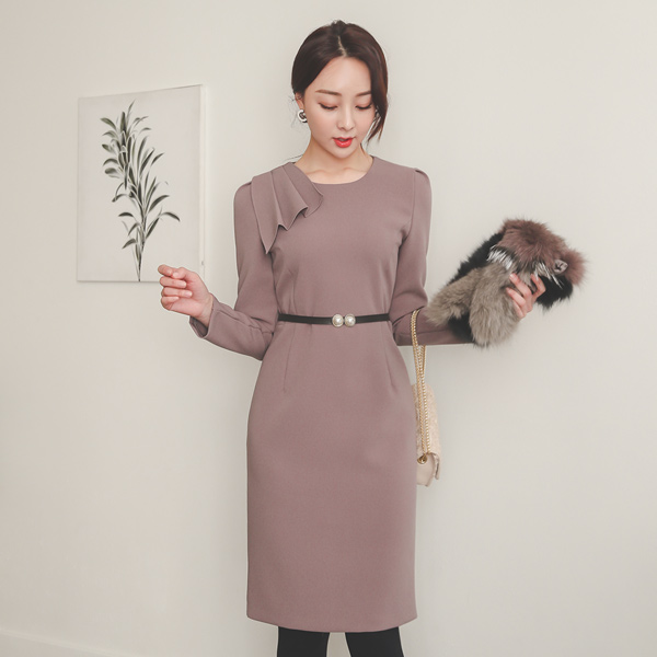 ピンタック ショルダー エポレット パールのベルト ワンピース