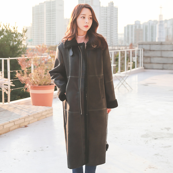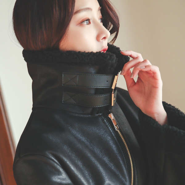 レザーライン ネックバックル ソフト ロングムートンコート
