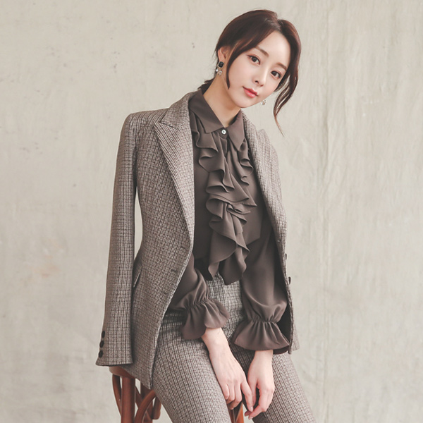 グレンチェック トリプルボタン アンバランス 毛織 ジャケット