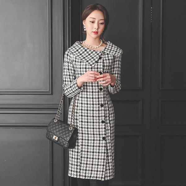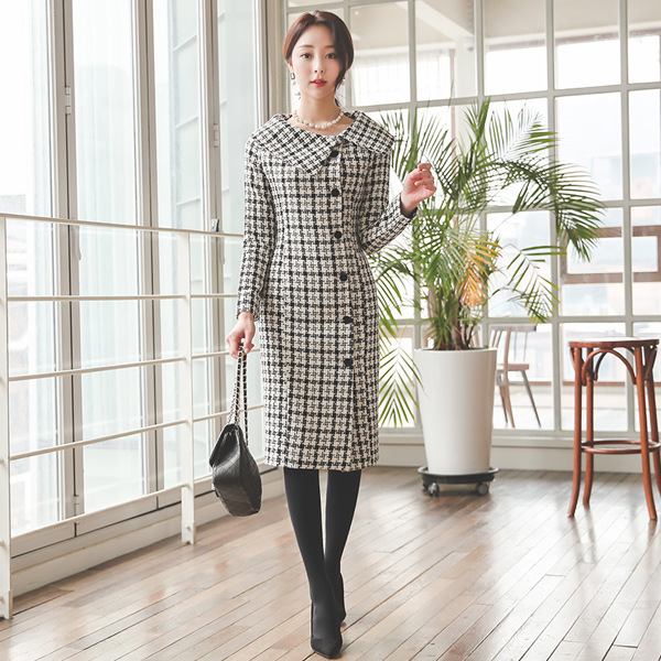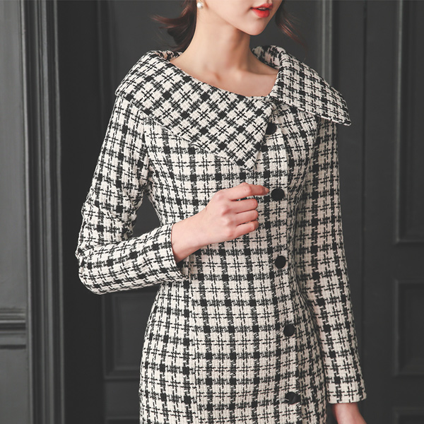 Coco ツイード フラットカラー ウール ワンピース