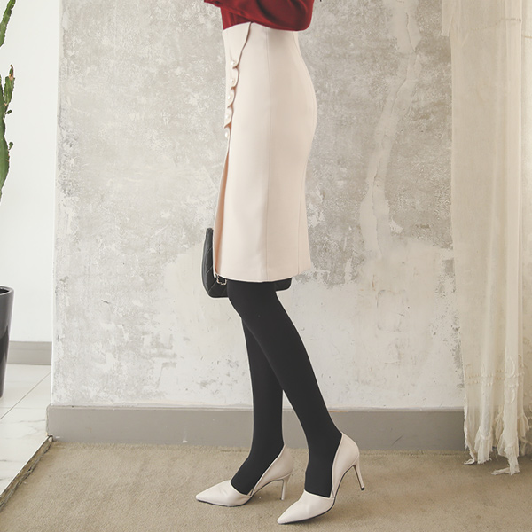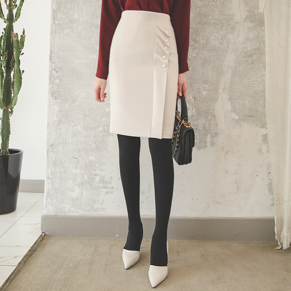 サイド シャーリング ラッフル 真珠 弾力 スカート