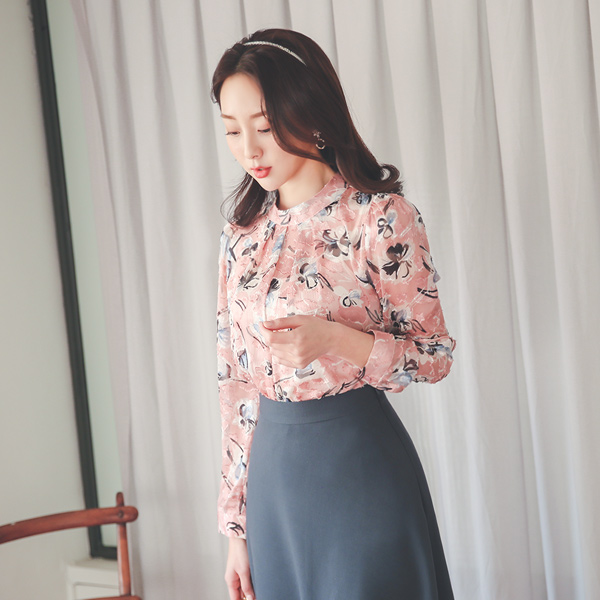 ハイネック ジャカード フェザー シースルー ブラウス