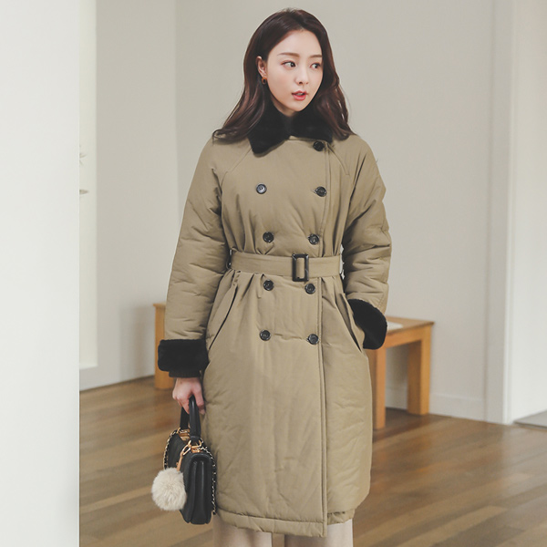 ミンクカラー ダブル トレンチ コート バディング(ミンク裏地)