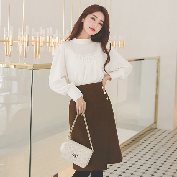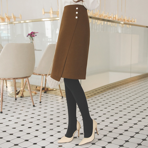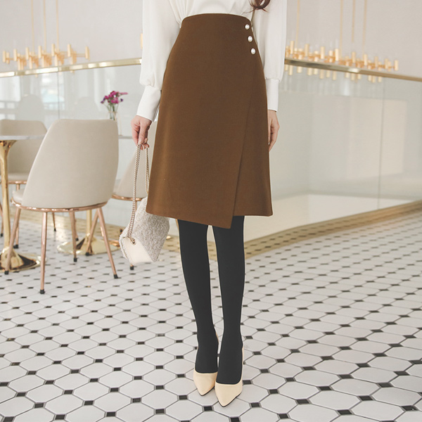 トリプル 真珠 斜線切開 Aライン ウールスカート