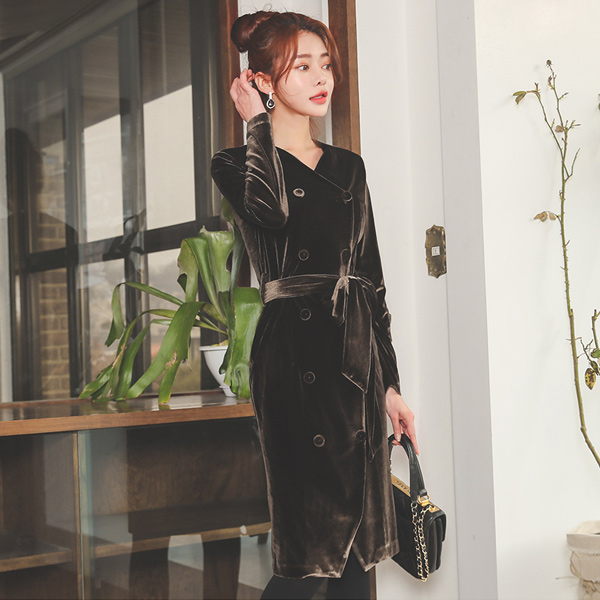 サンローラン ベルベット ベルティード ボタン サープリス ワンピース