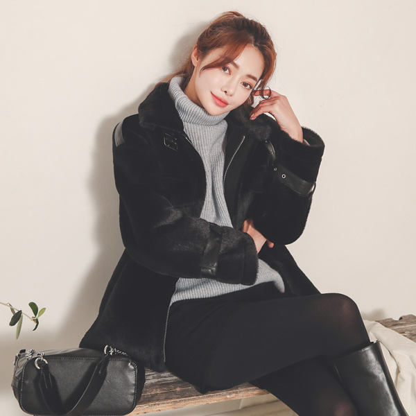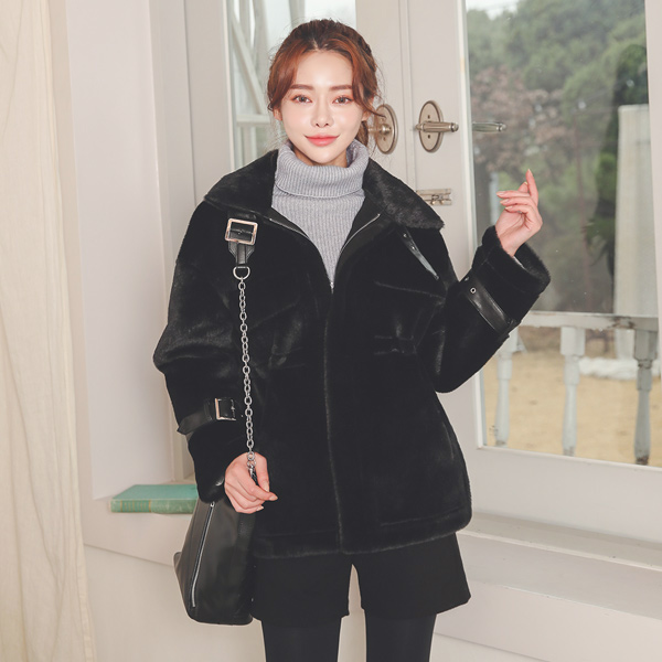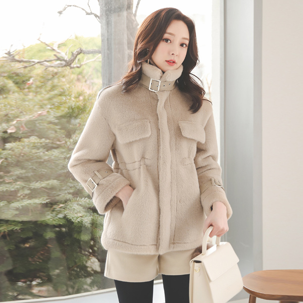 Eco ミンクファー レザー バックル ストリング ムスタング