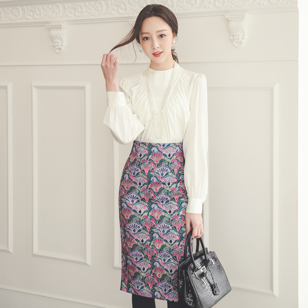 百合 デカルコマニー 弾力 サテン スカート