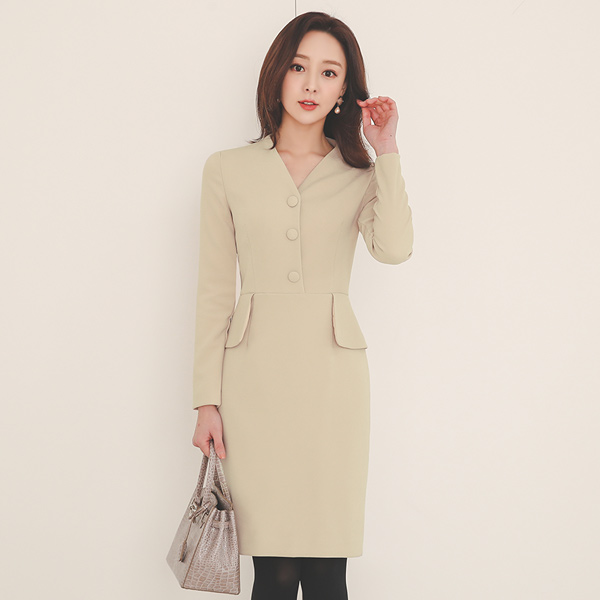 トリプル ボタン ペプラム Hライン モダン ワンピース