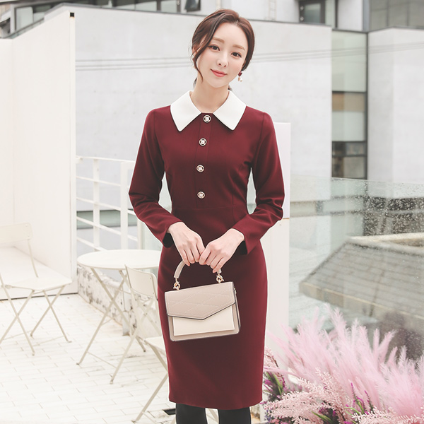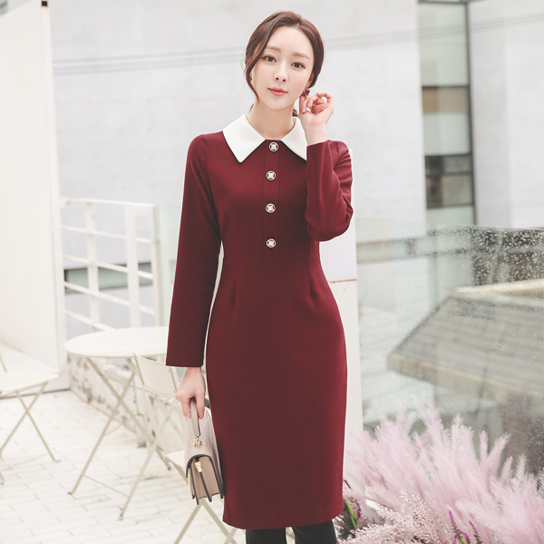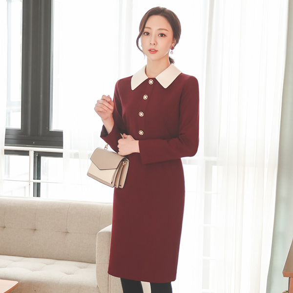 ゴールドわ ジュエリーボタン カラー 配色 ワンピース