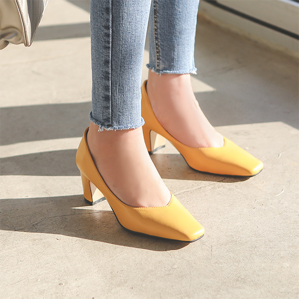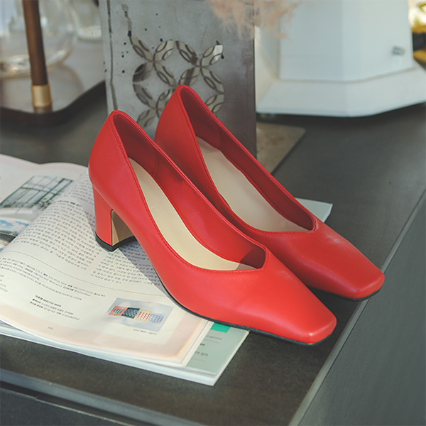 V スクエア 厚底 パンプス