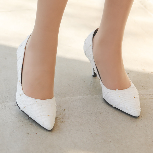 ゴール真珠 ツイード パンプス ヒール(5cm/7cm)