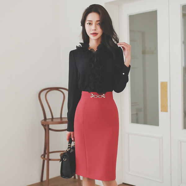 ゴールドバックル 飾り 切開ライン スカート