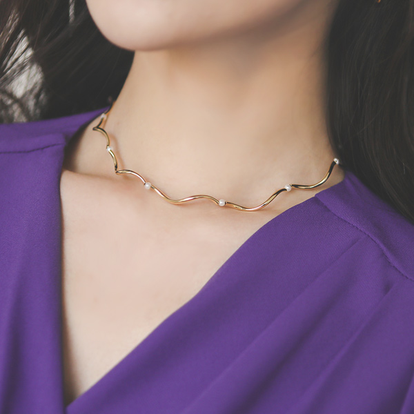 ウエーブ スリム 真珠 レイヤード ネックレス