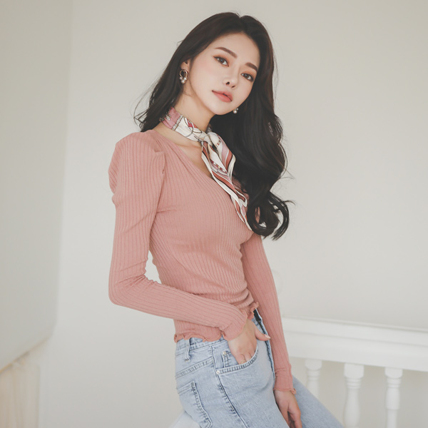 コール天 パフショルダー ラップ ニットティーシャツ