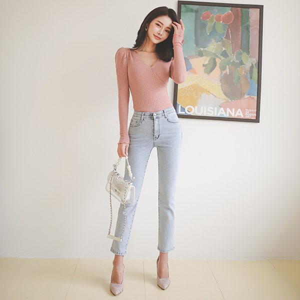 氷 ウォッシング ストレート Stretchy-Waist デニムパンツ