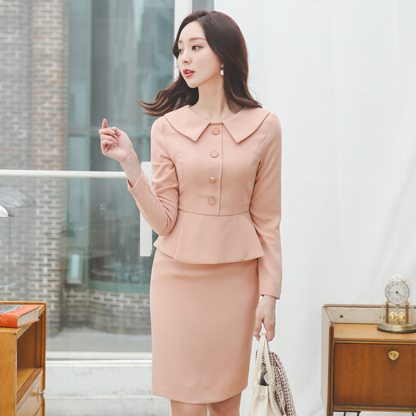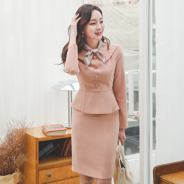 フラットカラー ウエーブボタンペプラム ワンピース