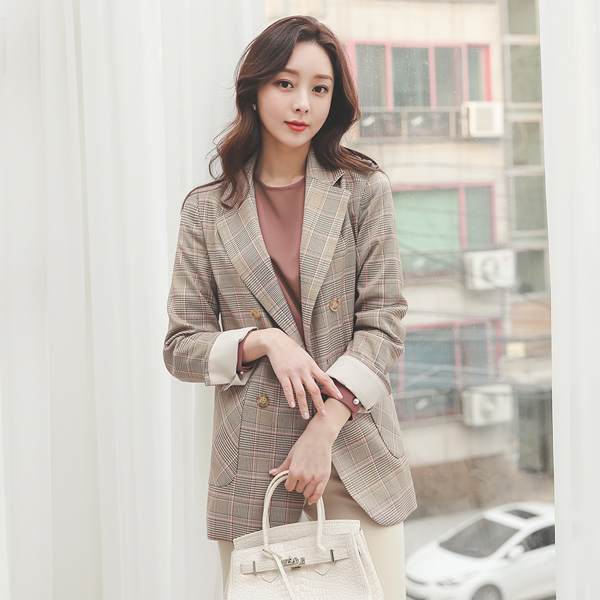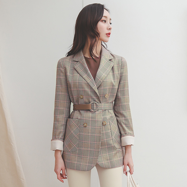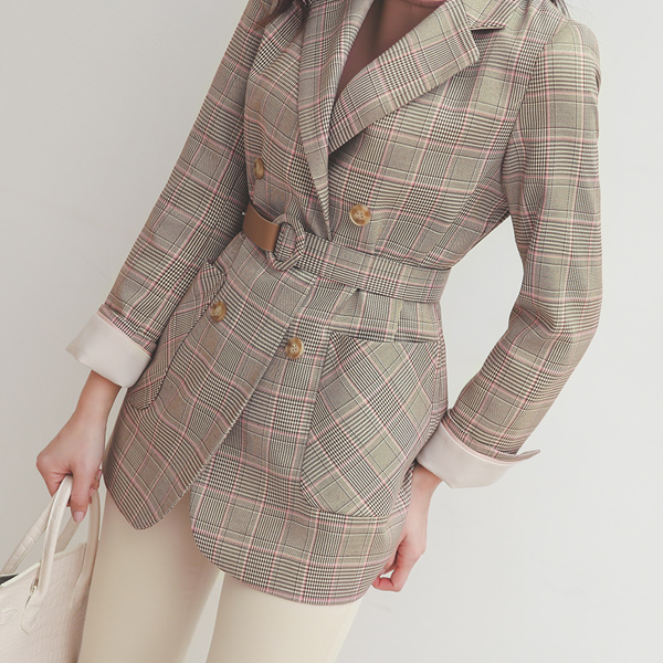 アンバランス ベルティード グレンチェック ダブル ジャケット