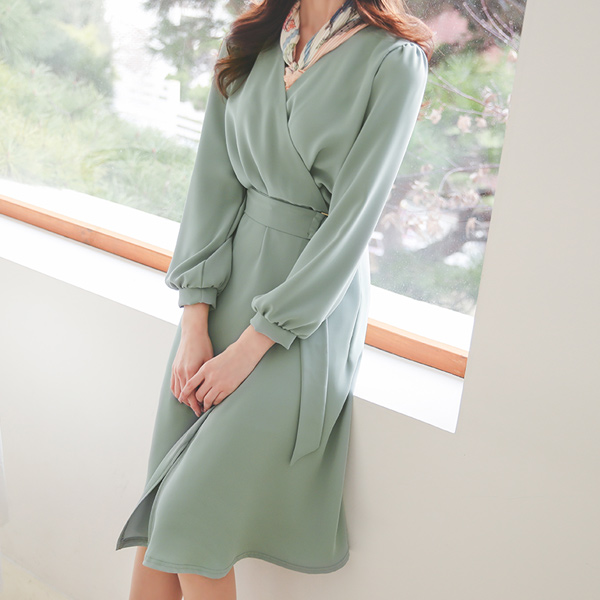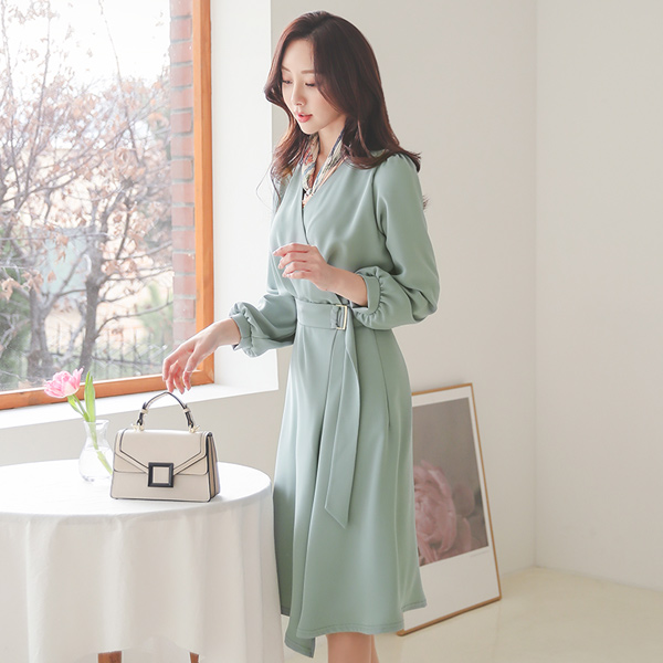 ベルティード アンバランス ゴアード ワンピース(長袖)