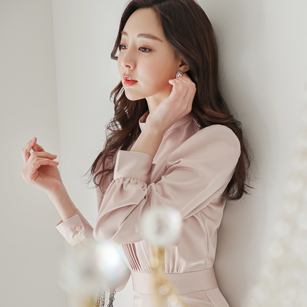 サテン プリーツ ミディライン スリム Hライン ワンピース