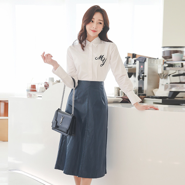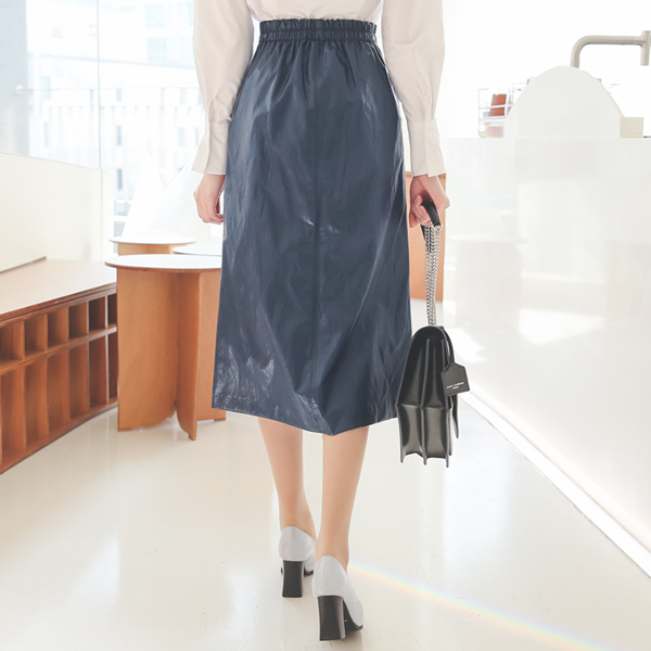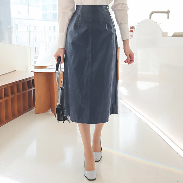 レザー 切開 Aライン 後面バンド ロングスカート