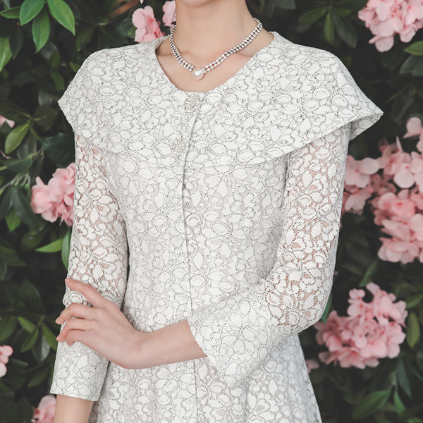 セーラー カラー 配色 レイス フレア ワンピース