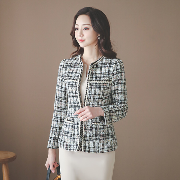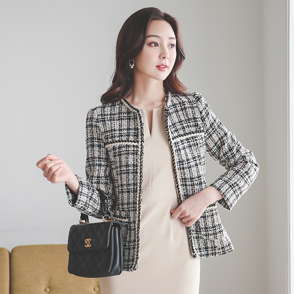 ロープ アンチックボタン 配色 ツイード ジャケット