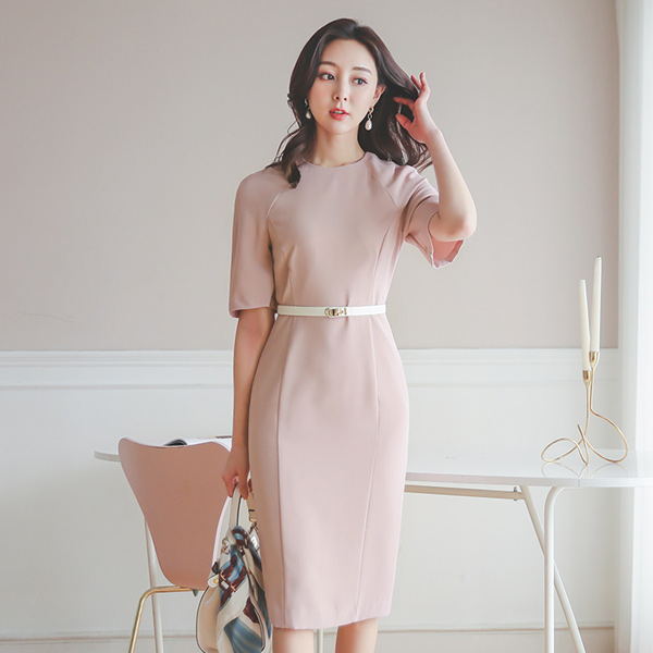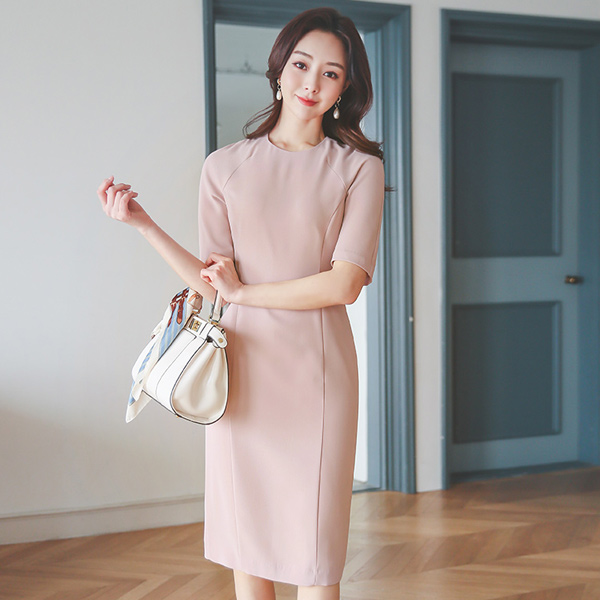 리엘 ラウンド ラグラン 切開 スリム ワンピース