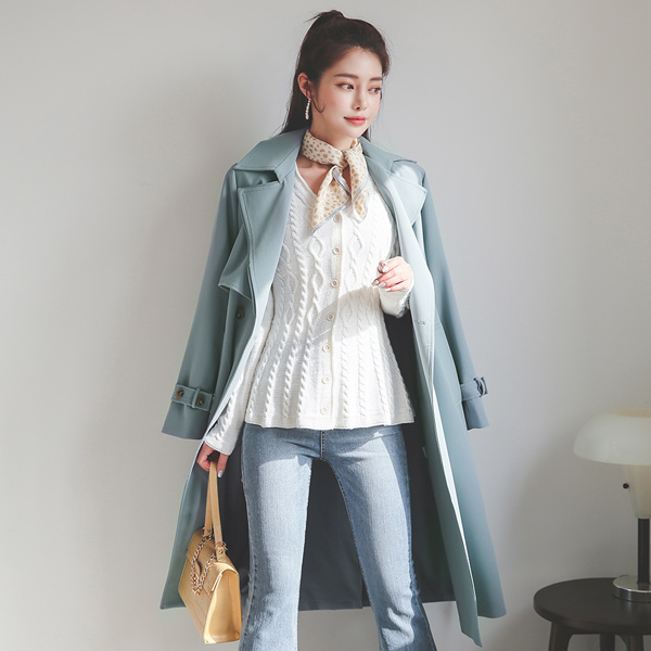 ダブルカラー Gun Flap 袖びじょう ロング トレンチコート