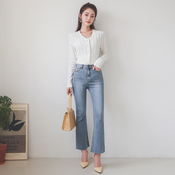 ハイライズ ワイド ブーツカット デニム ズボン