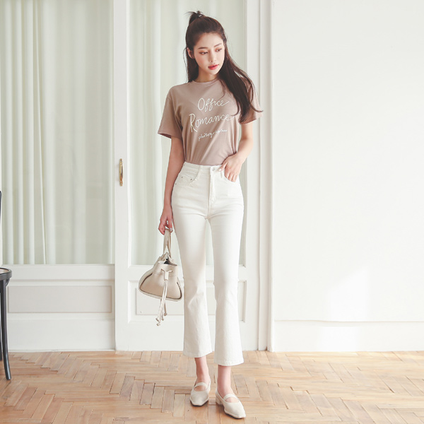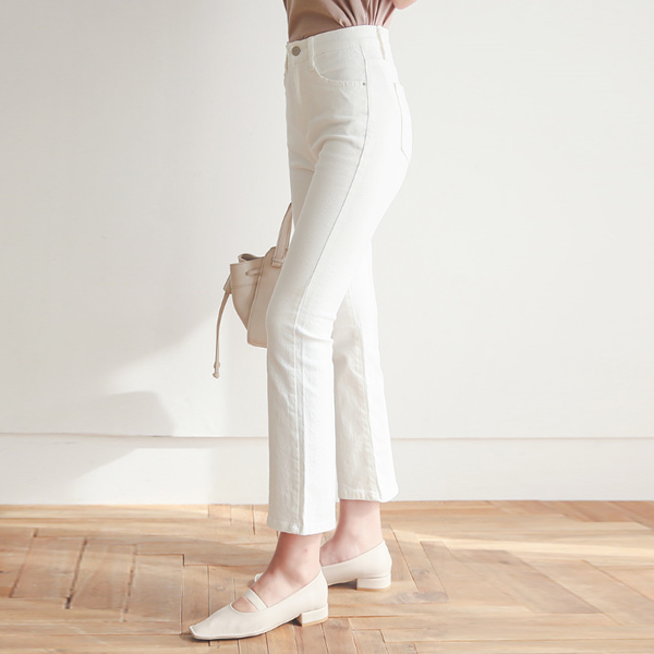 Stretchy-Waist クリーミー コットンスパンデックス ブーツカット ズボン