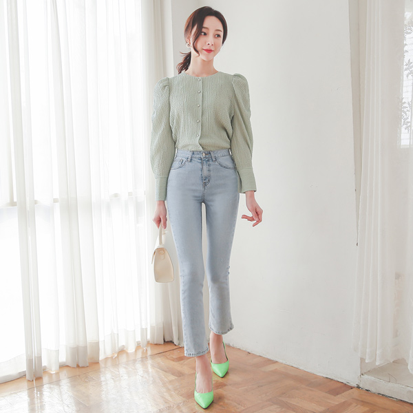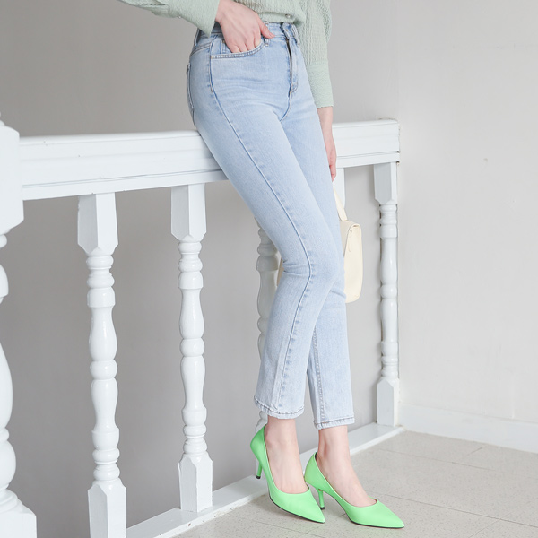 ハイウエスト ライト ウォッシング デニムパンツ