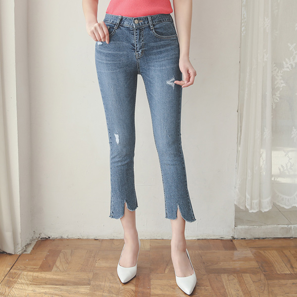 ダメージ ポイント ウォッシング ユニーク カッティング デニムパンツ