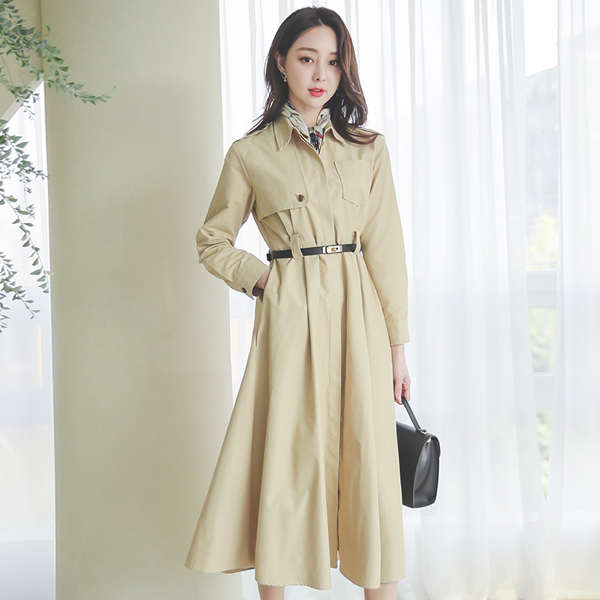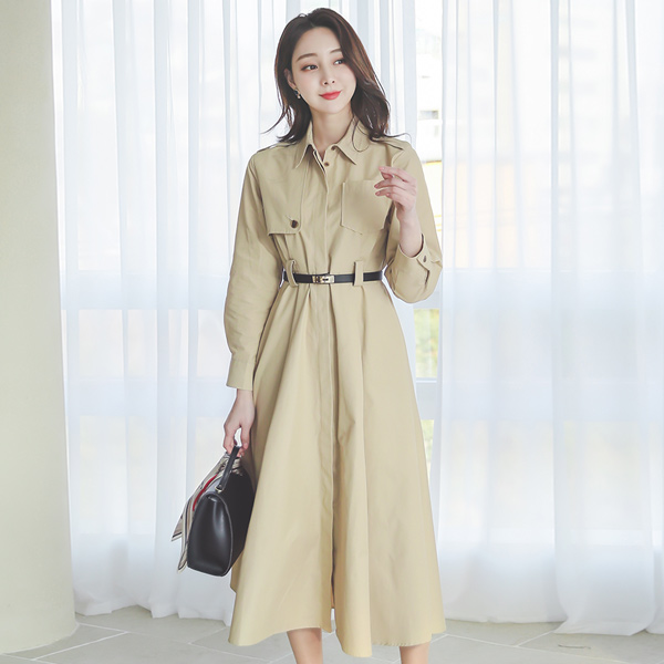 トレンチ シャツ ゴールドベルト ロング フレア ワンピース