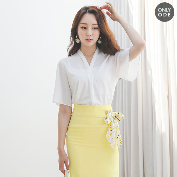 [スクラッチ商品]ODE ブイネック ブラウス(半袖)