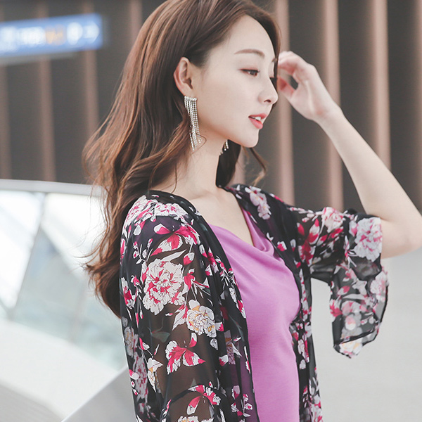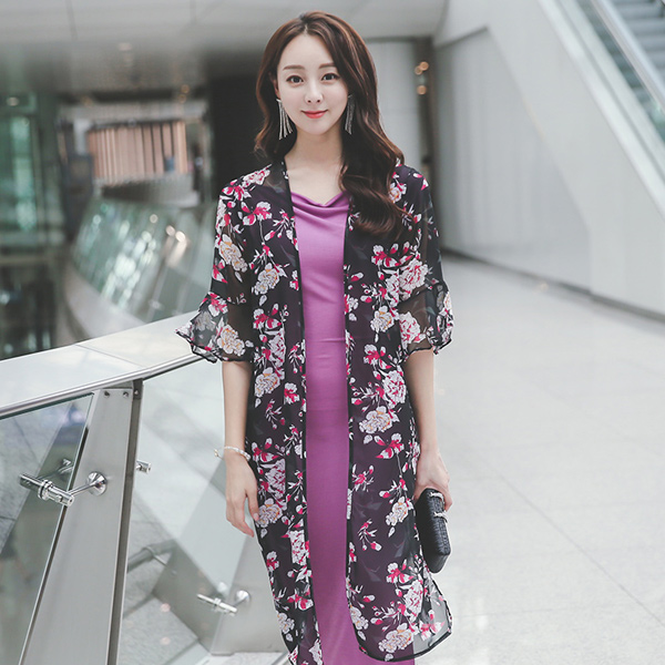 [スクラッチ商品]花柄 ラッフル シフォン ロングカーディガン